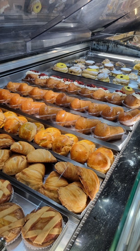 Un minus la capitolul gastronomie: La mic-dejun nu stau ei foarte bine sau nu suntem noi obișnuiți. Ei servesc cafea și croissant sau orice altceva dulce. Noi nici cafea nu bem și nici dulciuri nu mâncăm înainte de ceva sărat…noroc că la cazarea din Salerno am avut un super mic-dejun de ne ajungea până spre seară.